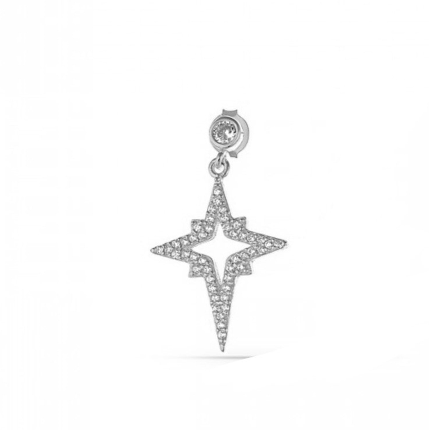SALLANTILI KUTUP YILDIZI GÜMÜŞ ÇİVİ KÜPE (TEK) - RODYUM KAPLAMA