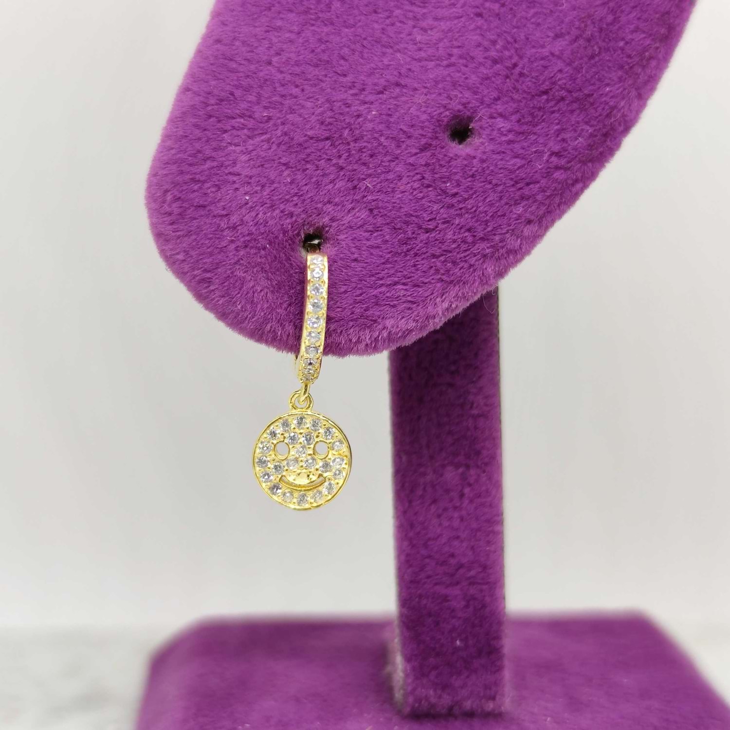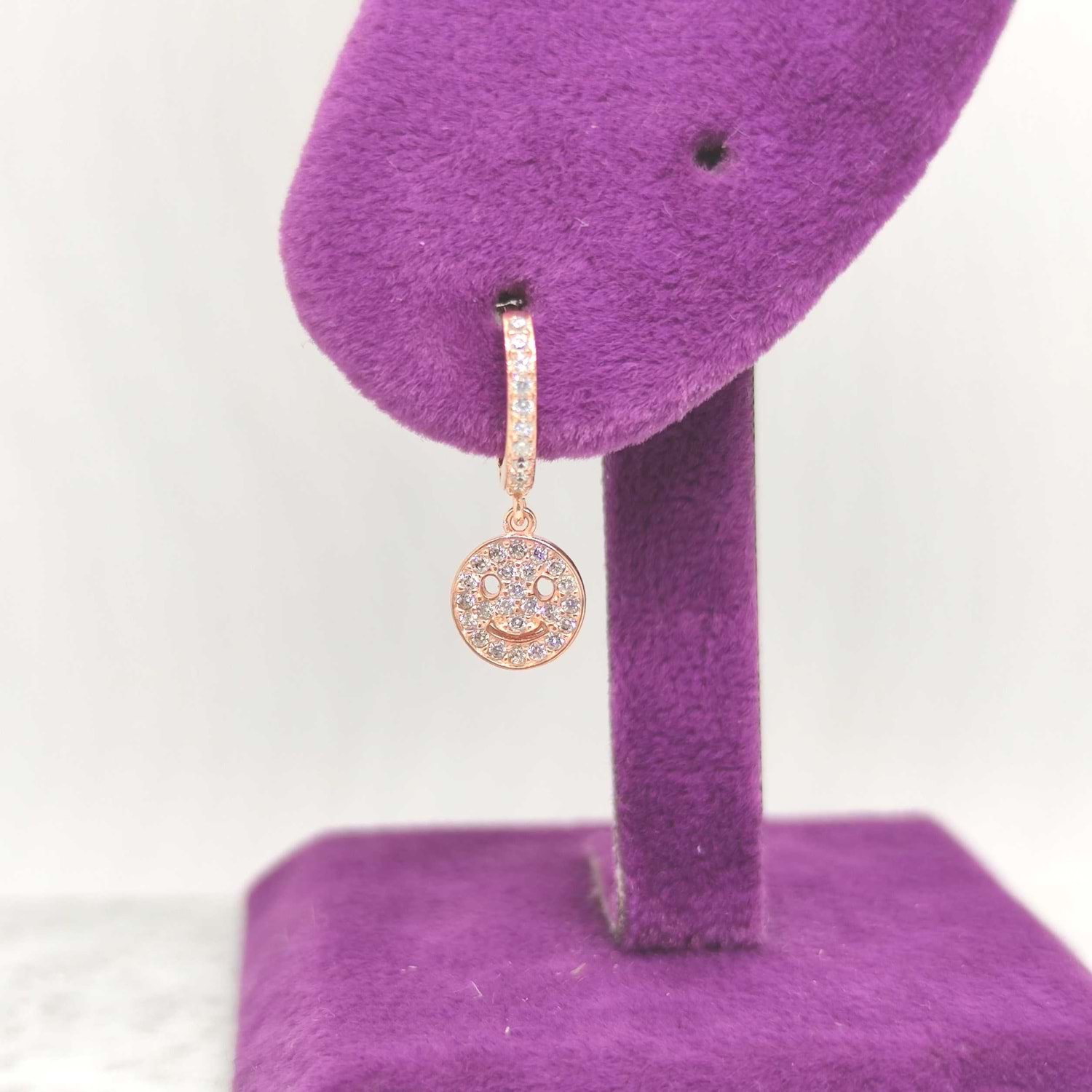 güler yüz gülen yüz detaylı minimal taşlı halka gümüş küpe :)