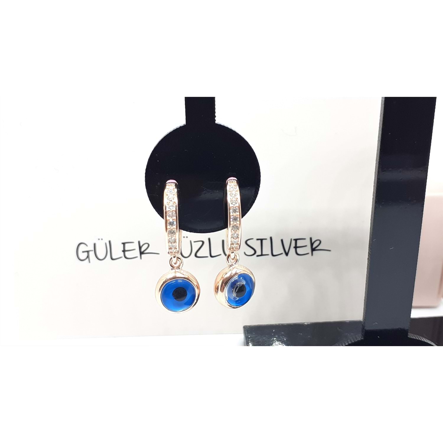 TAŞLI BÜYÜK CAM GÖZ HALKA GÜMÜŞ KÜPE