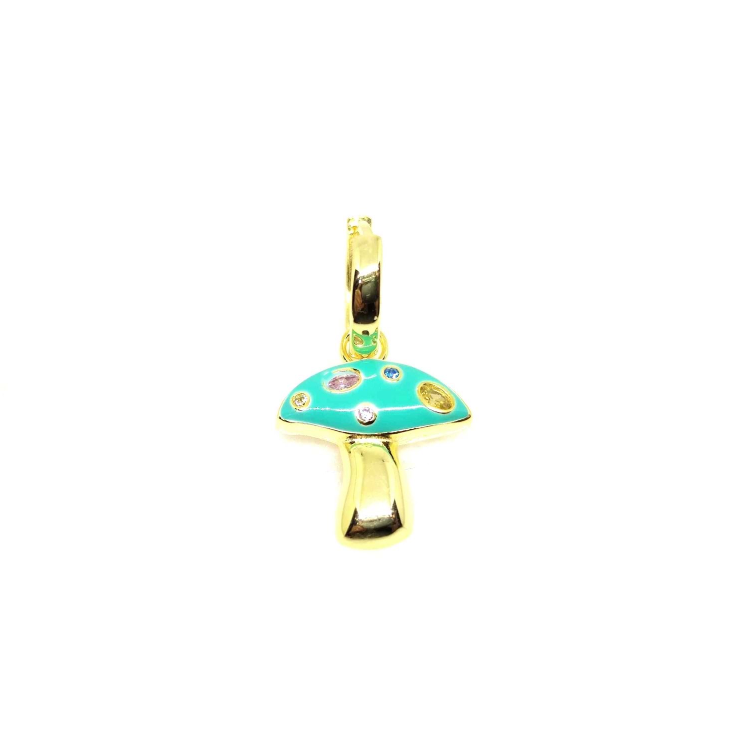 YEŞİL MİNELİ MANTAR GÜMÜŞ TEK HALKA KÜPE