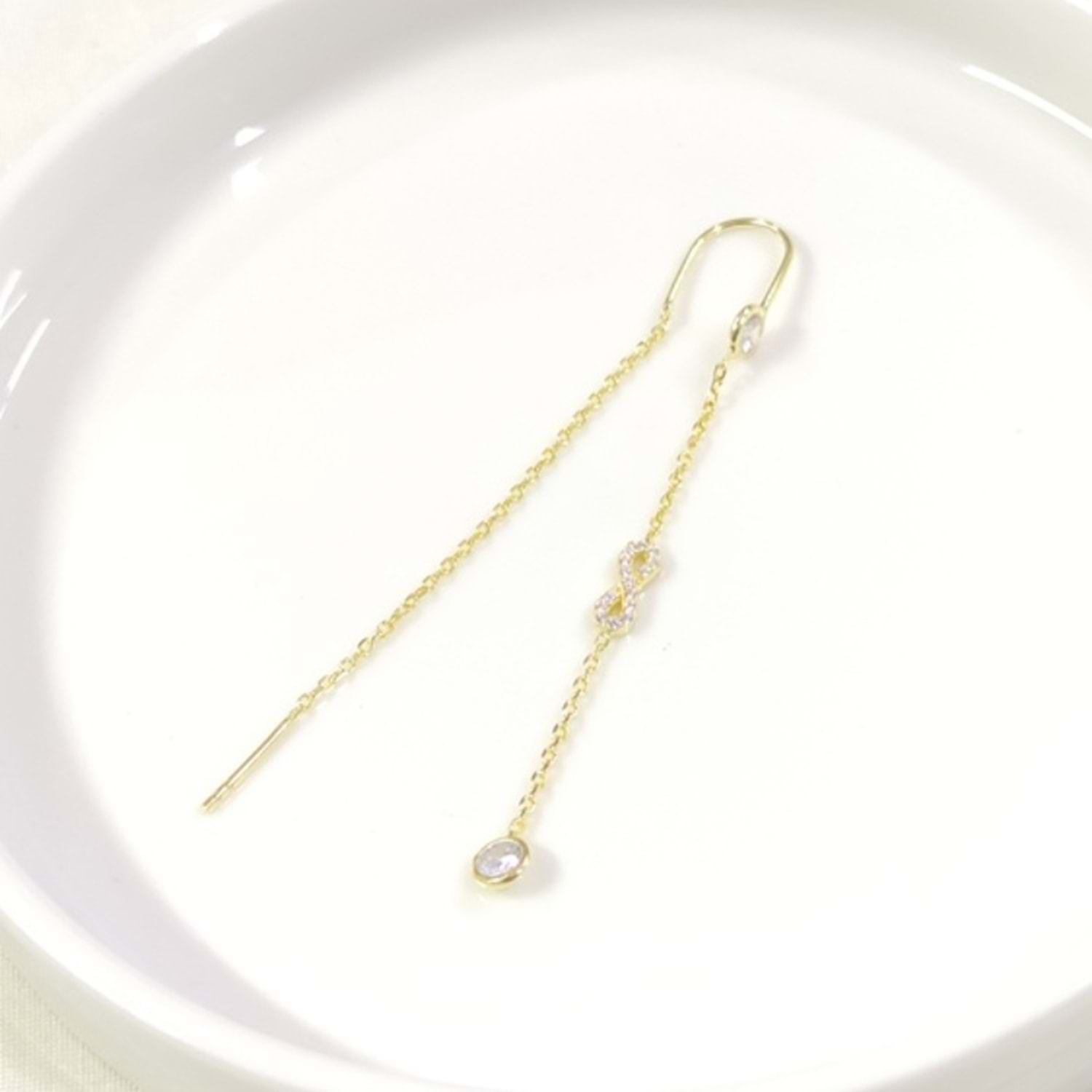 ZİNCİRLİ SONSUZLUK JAPON TEK GÜMÜŞ KÜPE - ALTIN SARI