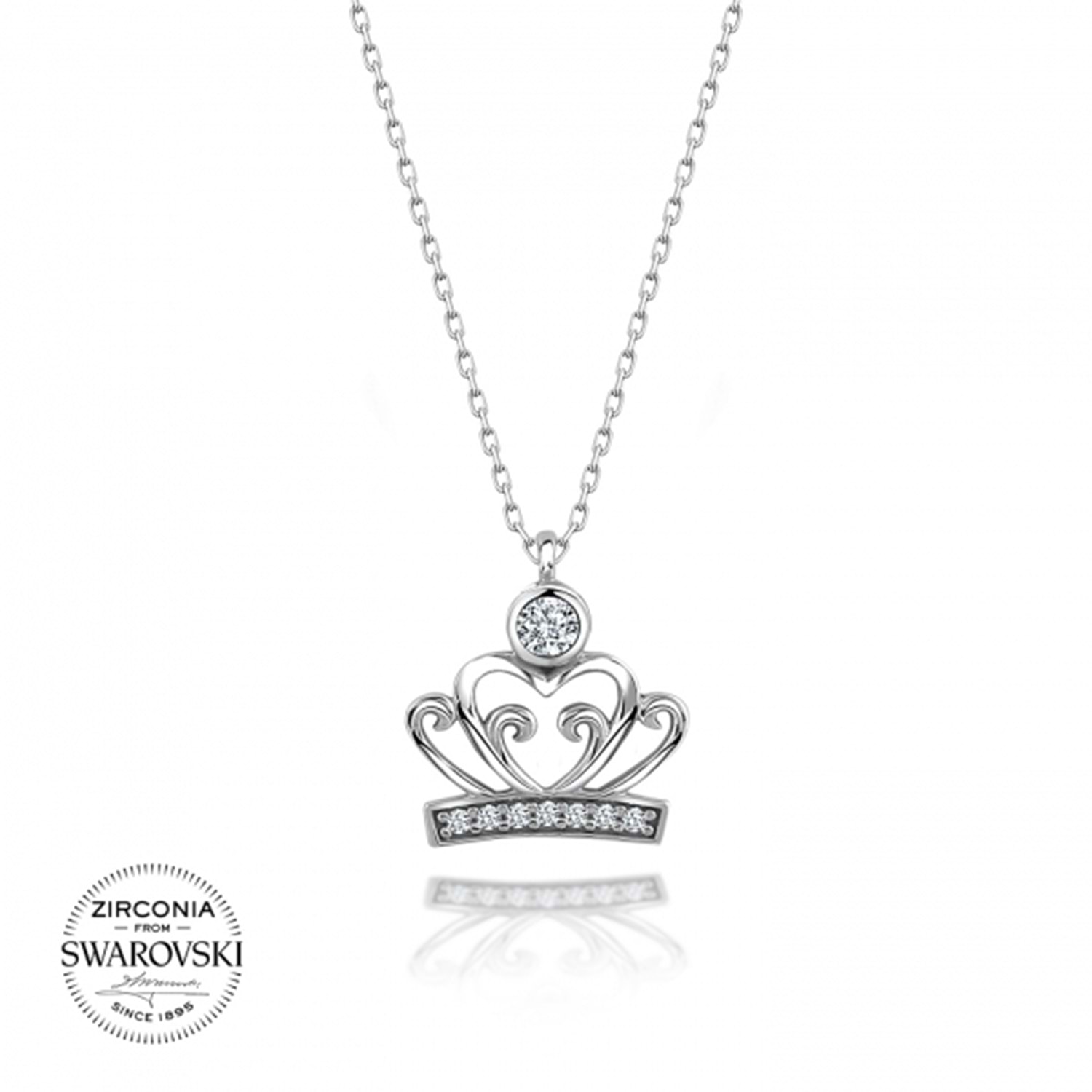 SWAROVSKI ZIRCONIA TAŞLI TAÇ GÜMÜŞ KOLYE