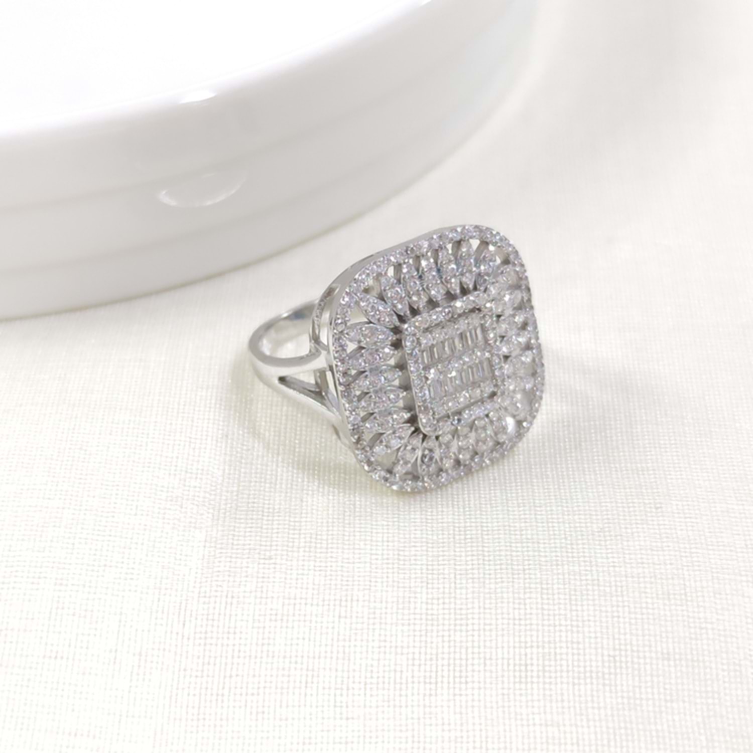 2,10 CM BÜYÜK KARE BAGET GÜMÜŞ YÜZÜK - 20