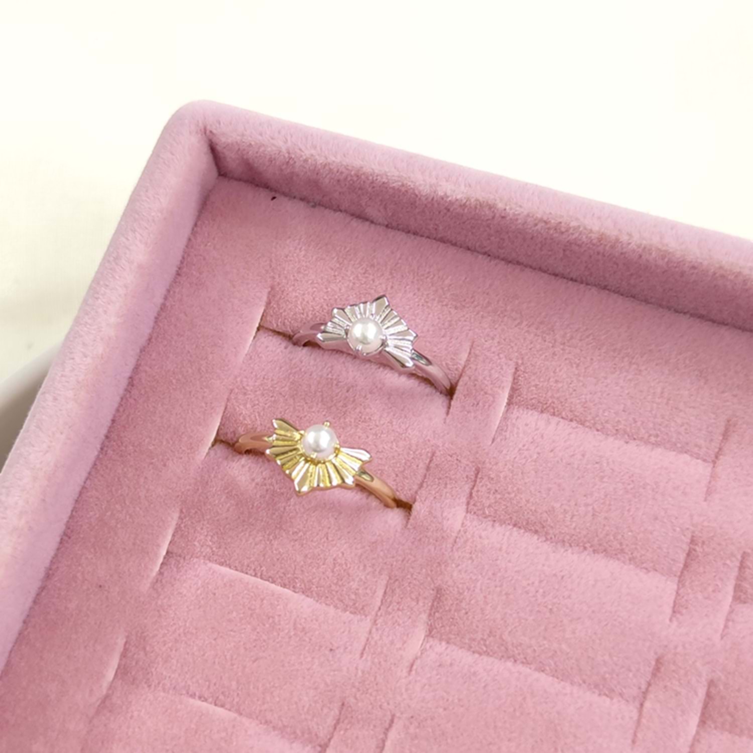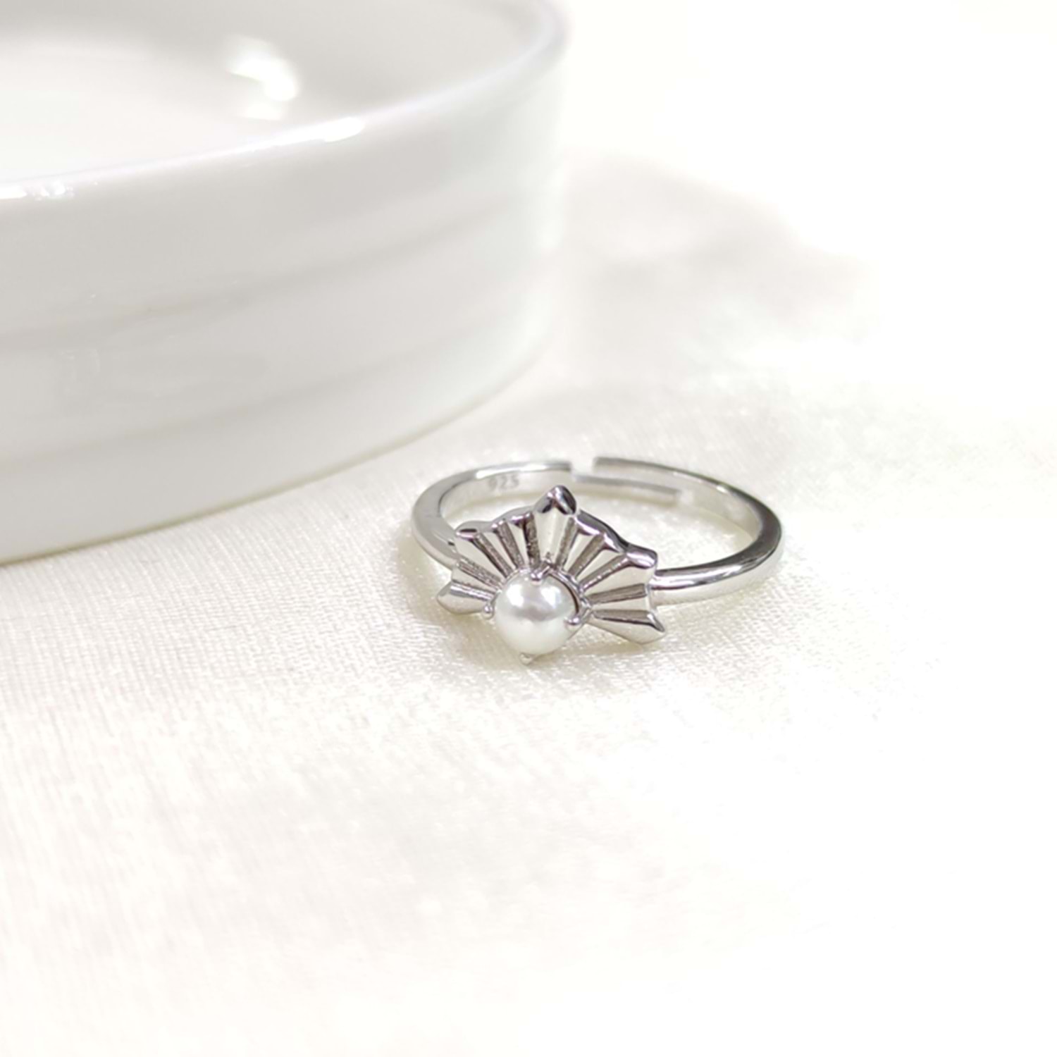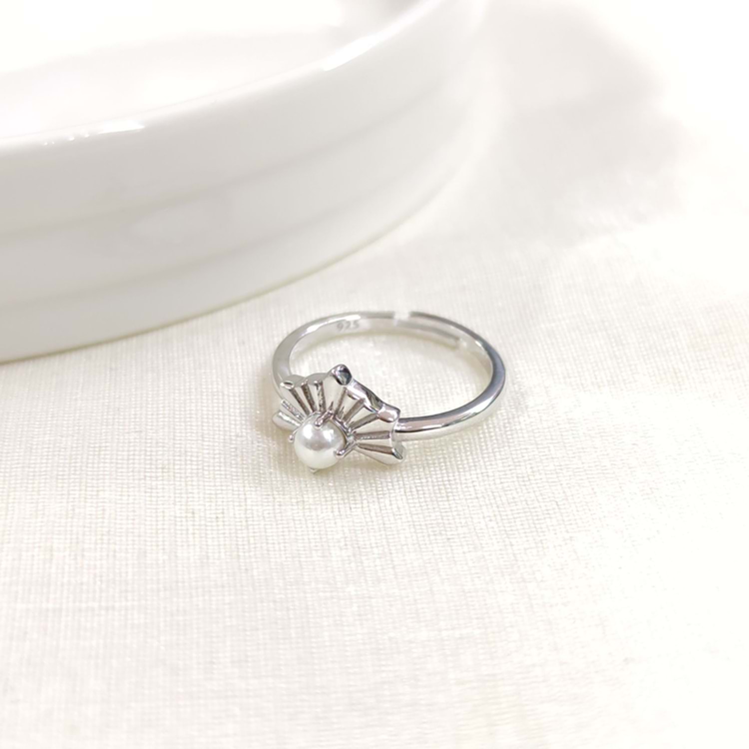 İNCİLİ AYARLANABİLİR GÜMÜŞ YÜZÜK - RODYUM BEYAZ
