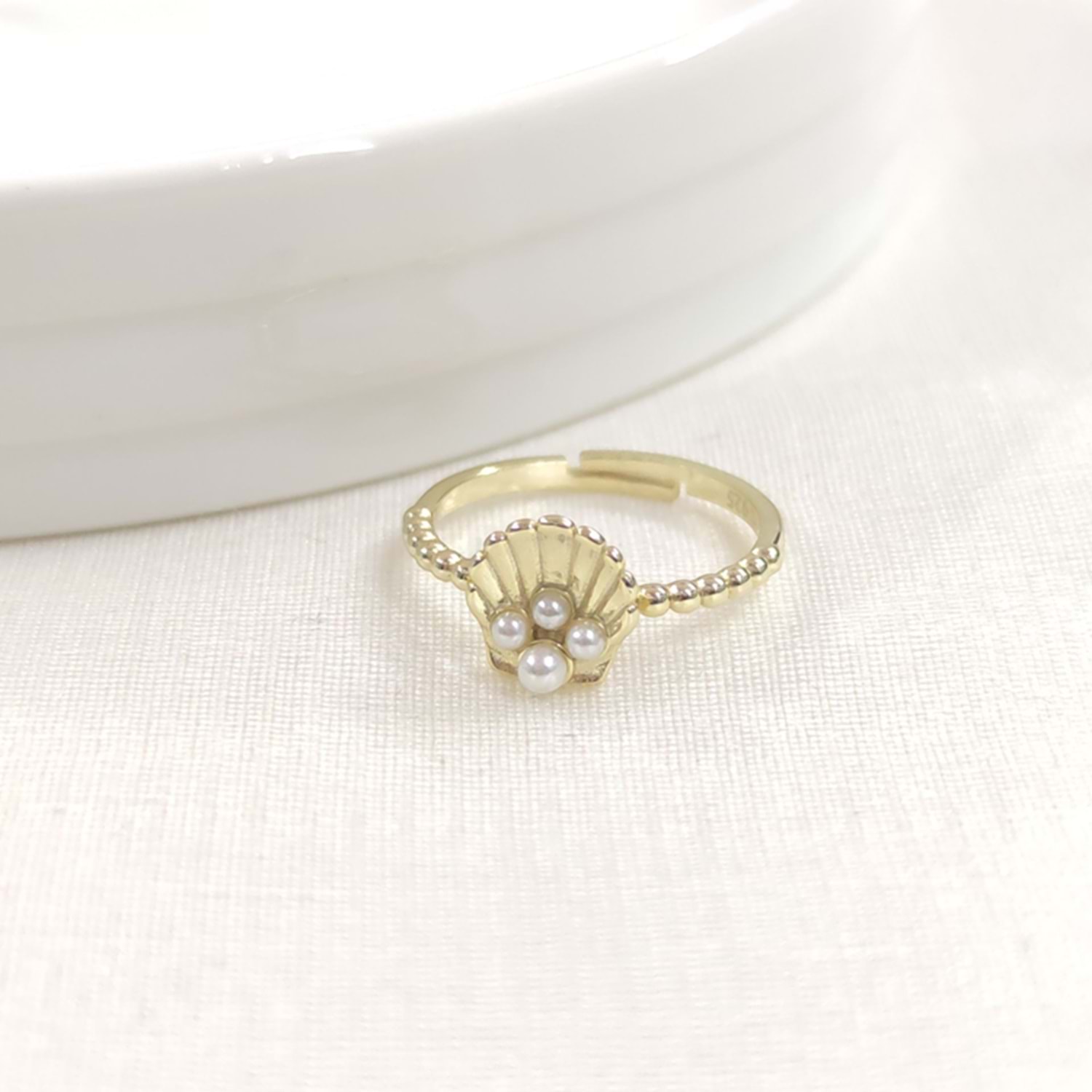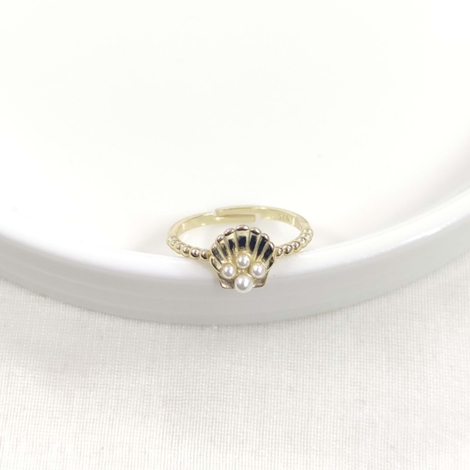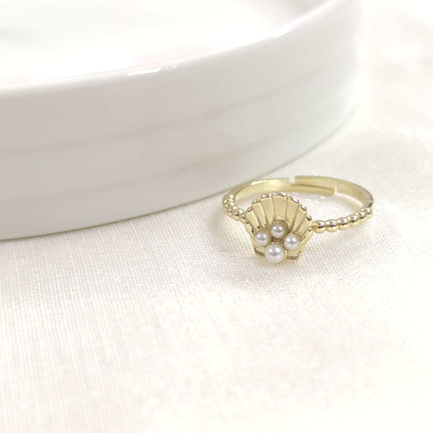 İNCİLİ İSTİRİDYE AYARLANABİLİR GÜMÜŞ YÜZÜK - ALTIN SARI