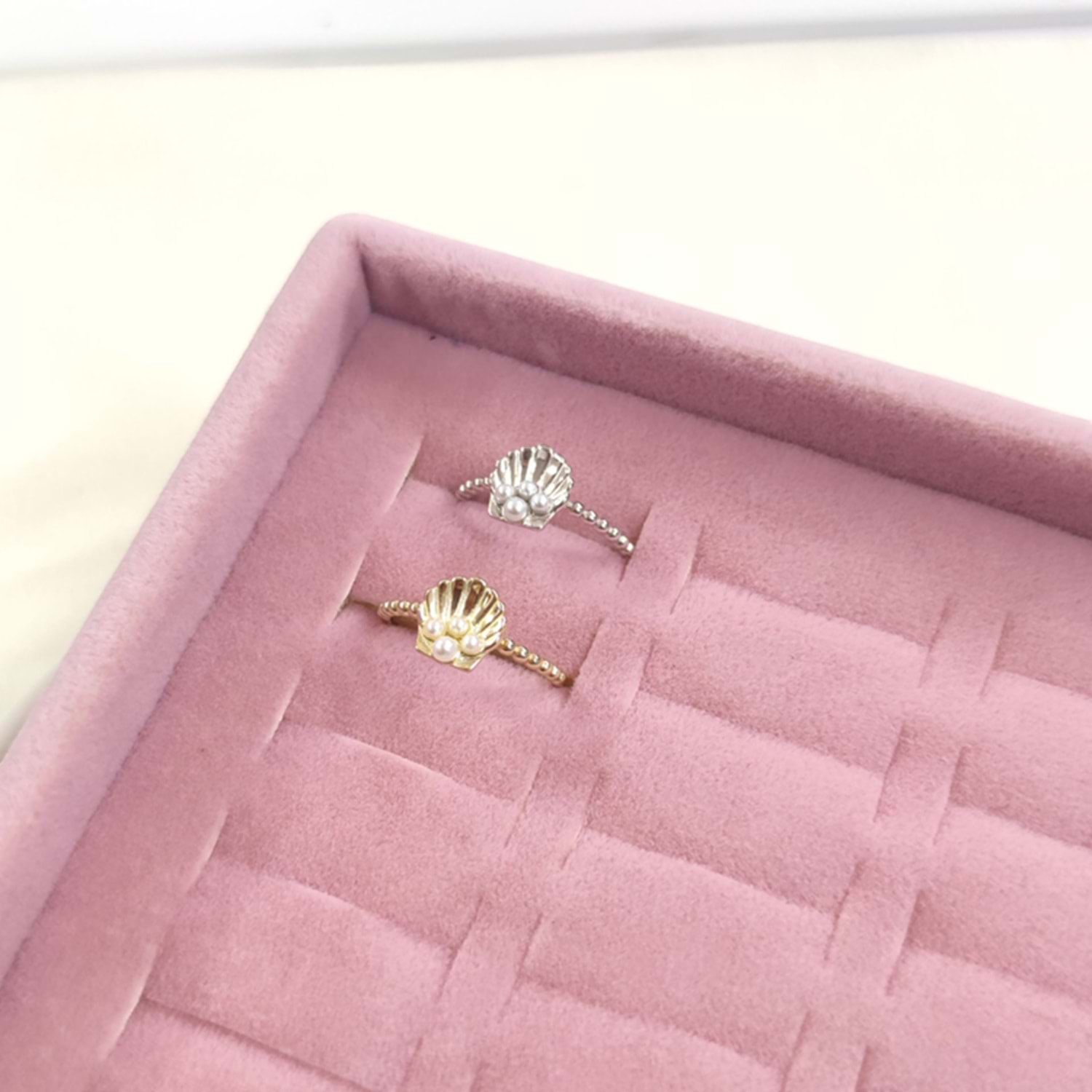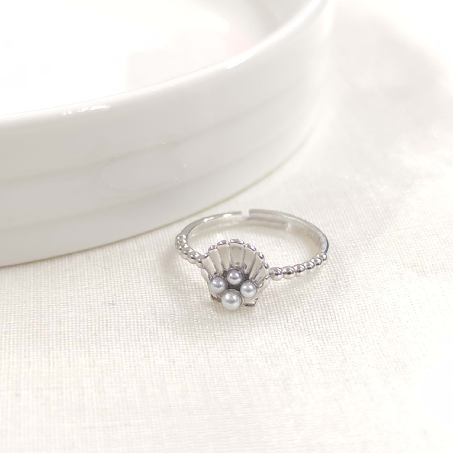 İNCİLİ İSTİRİDYE AYARLANABİLİR GÜMÜŞ YÜZÜK - RODYUM BEYAZ