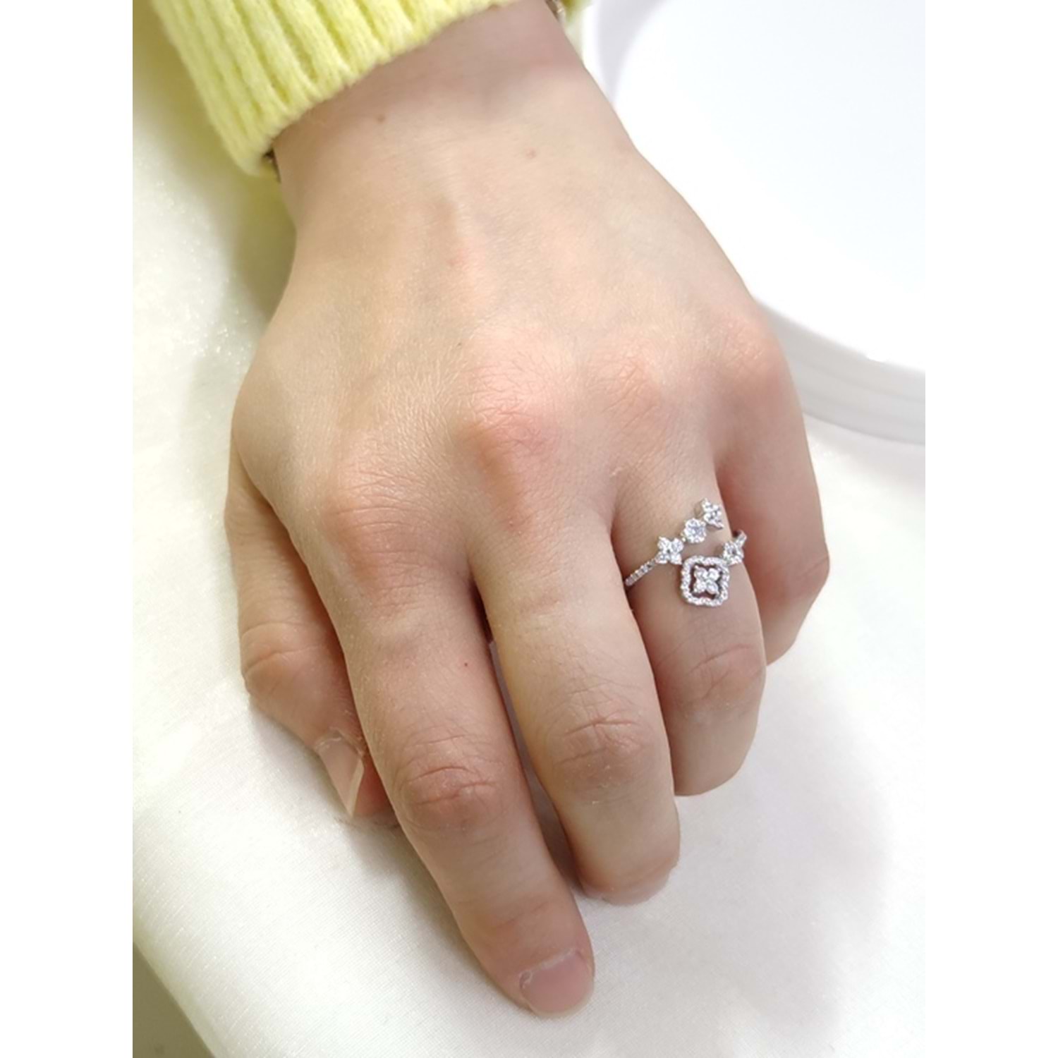 İTHAL ÇİÇEK TAŞLI GÜMÜŞ YÜZÜK