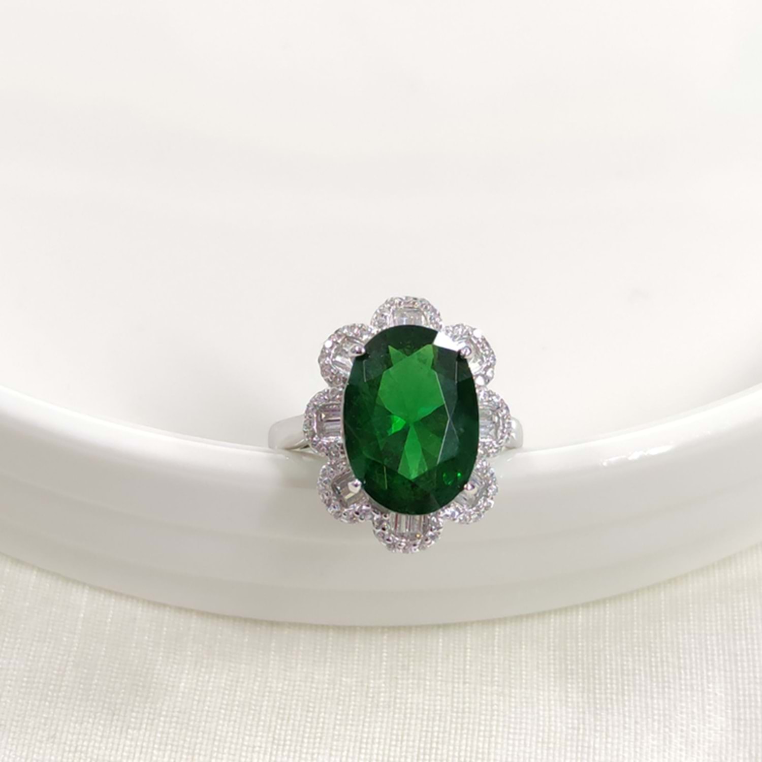 İTHAL OVAL BAGET ÇİÇEK ZÜMRÜT ZİRKON GÜMÜŞ YÜZÜK - 12