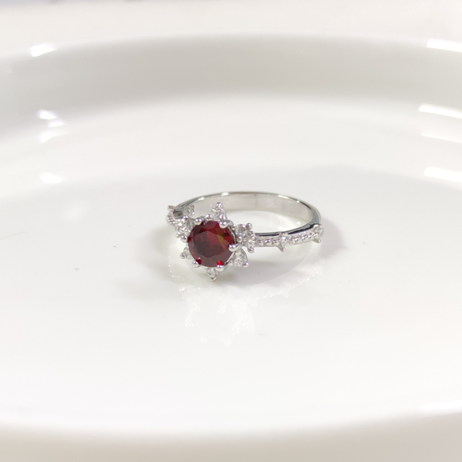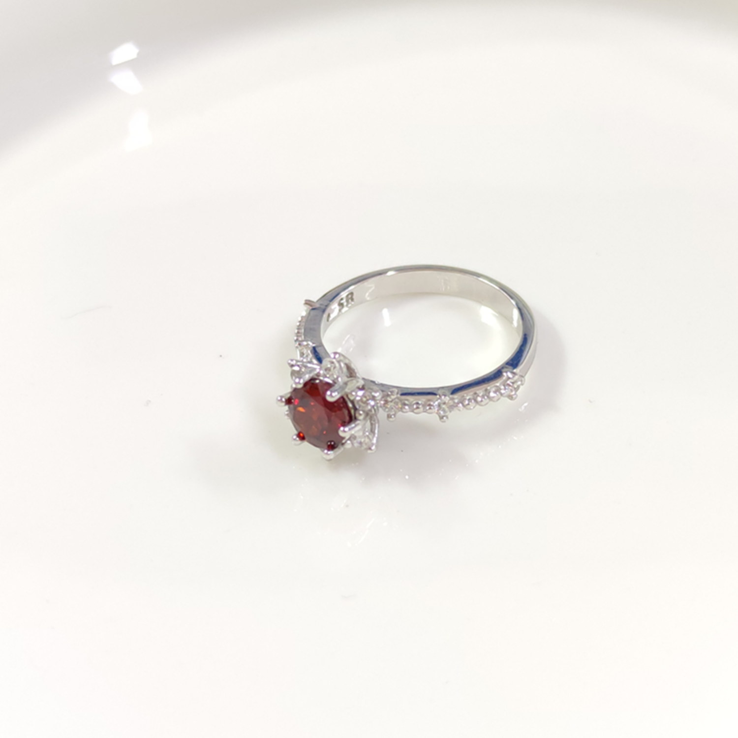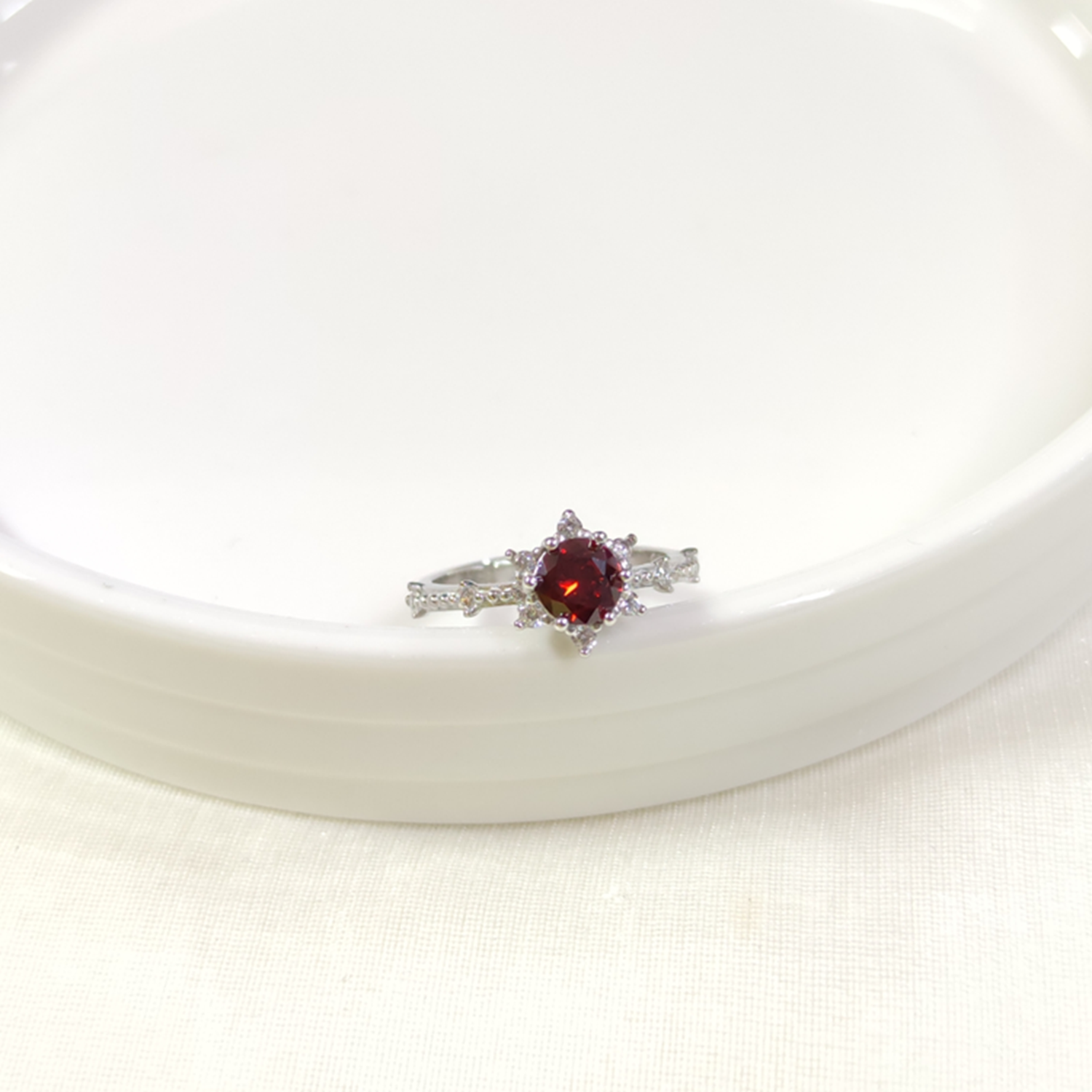 KIRMIZI ZİRKON TAŞLI ÇİÇEK LOTUS TEK TAŞ GÜMÜŞ YÜZÜK - 16