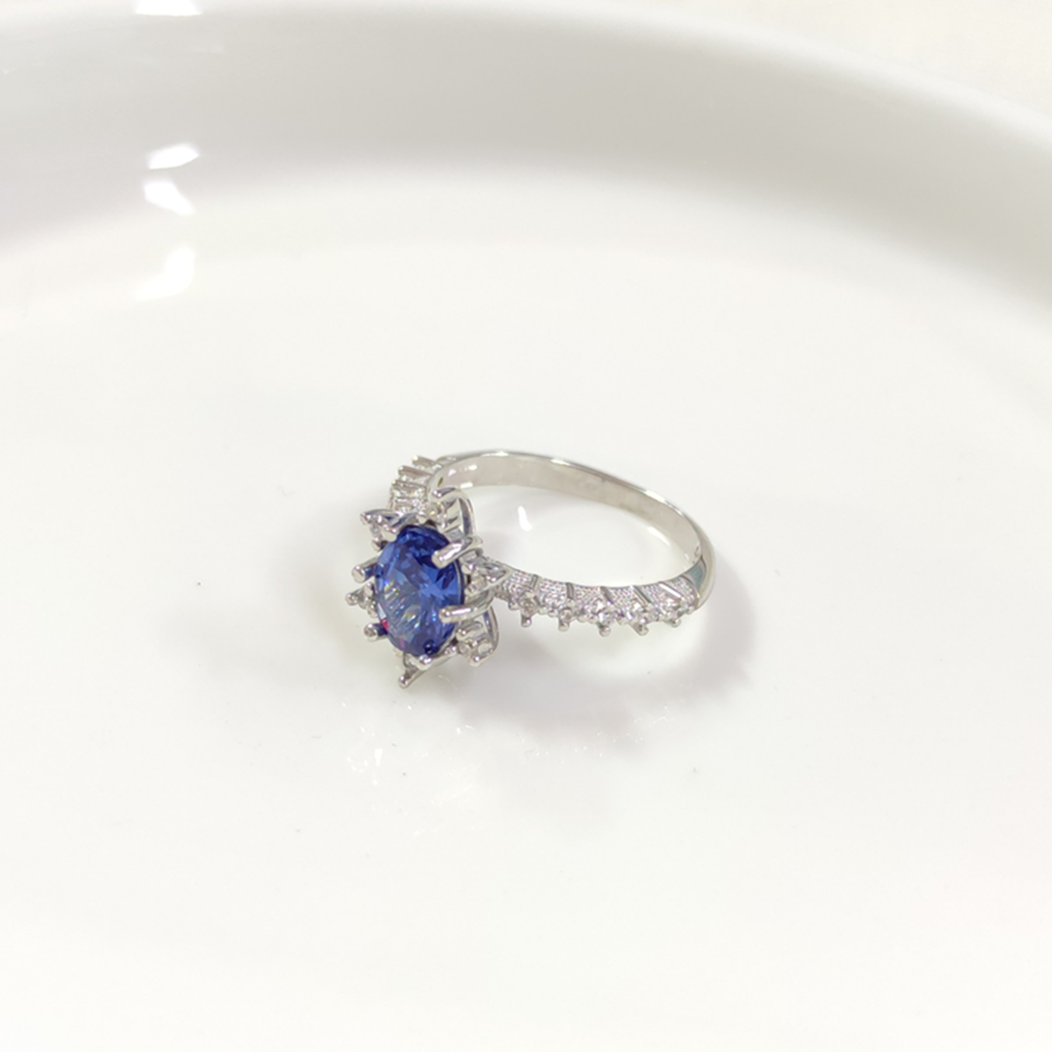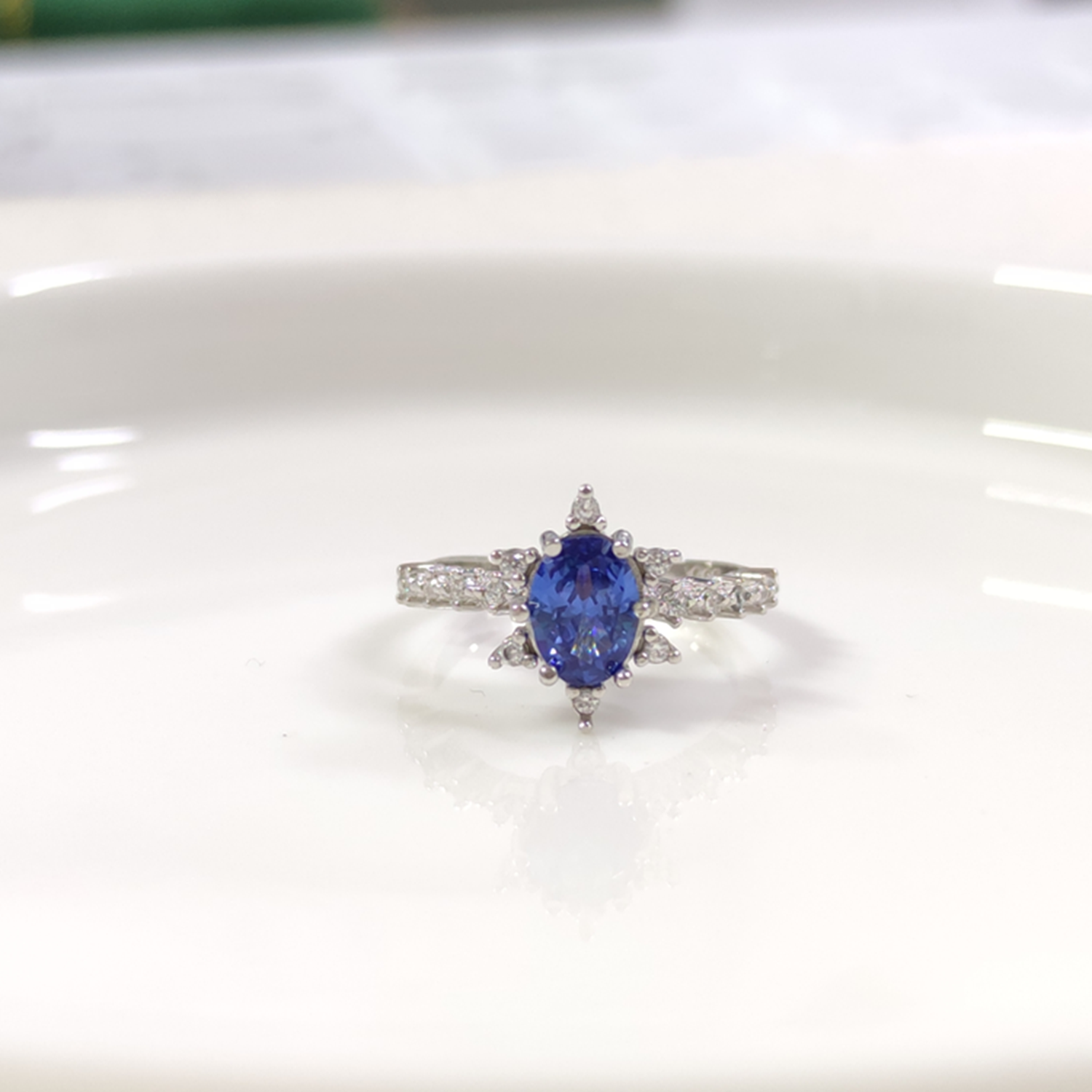 MAVİ OVAL TAŞLI ÇİÇEK LOTUS TEK TAŞ GÜMÜŞ YÜZÜK - 15