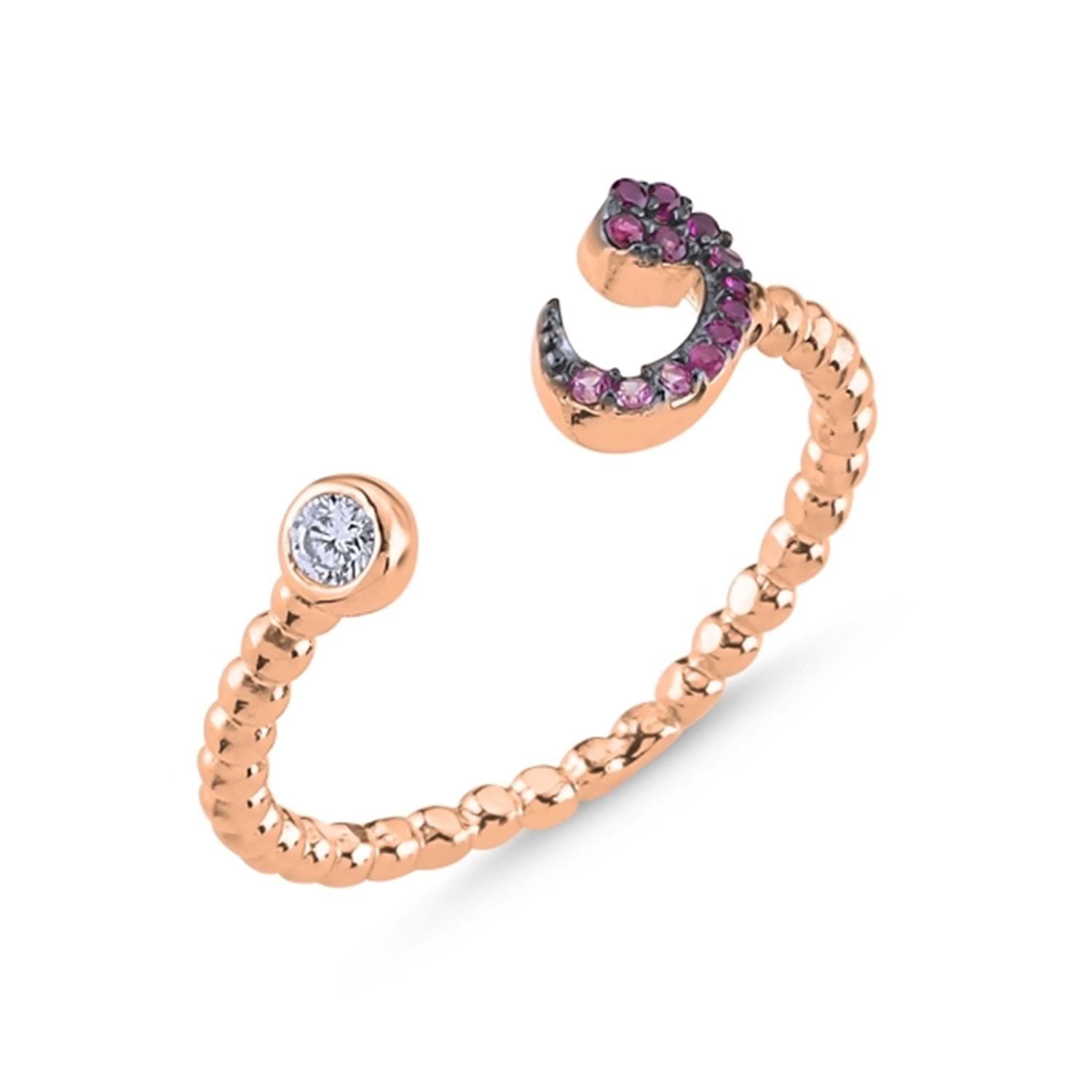 PEMBE TONLAMALI NANO TAŞLI AYARLANABİLİR VAV GÜMÜŞ YÜZÜK - ROSE ALTIN KAPLAMA