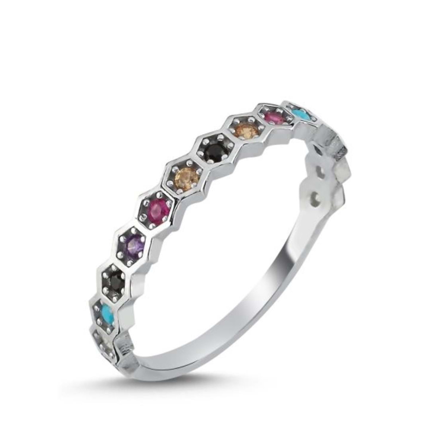 RENKLİ YARIMTUR GÜMÜŞ YÜZÜK - 12