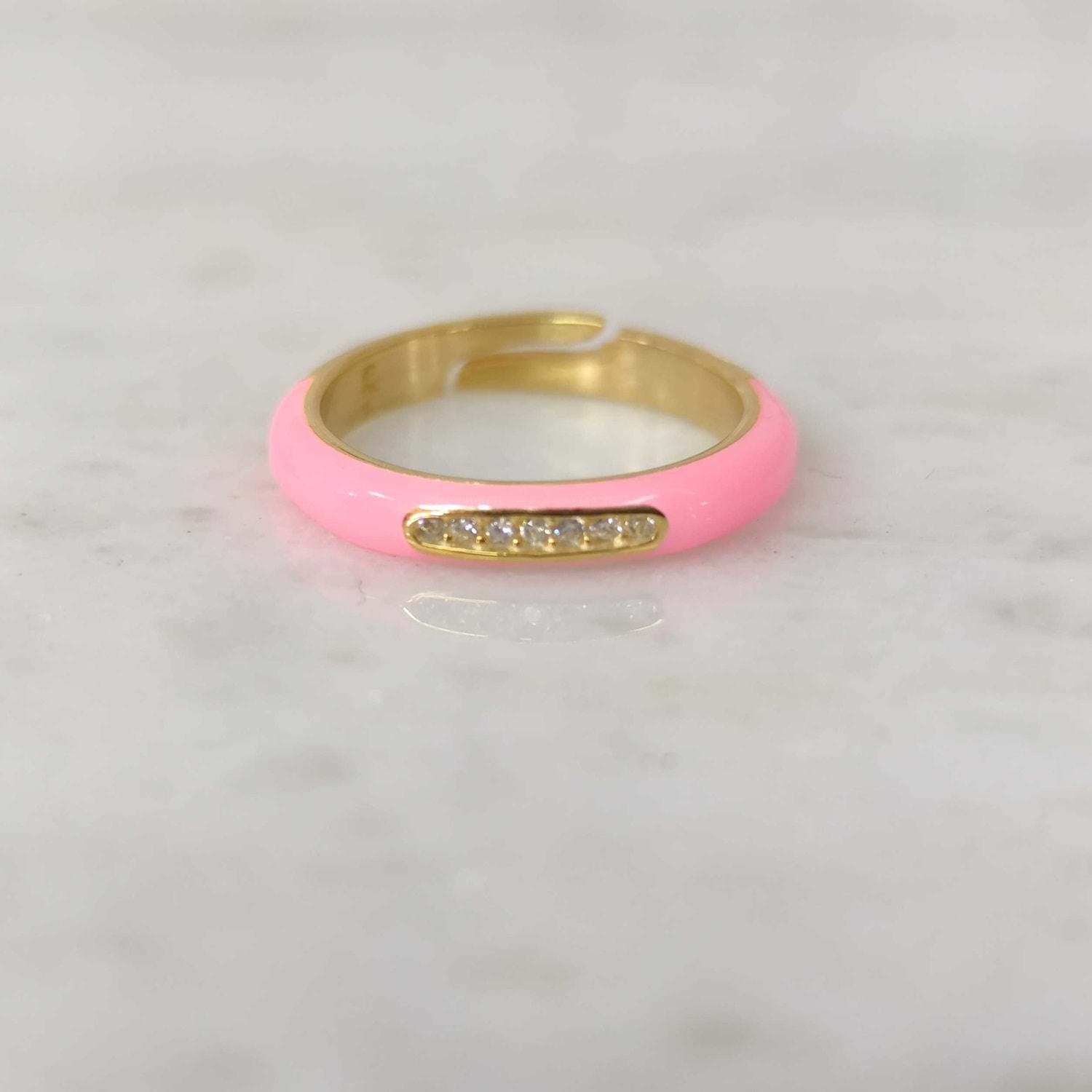 TAŞ DETAYLI MİNELİ GÜMÜŞ YÜZÜK - PEMBE