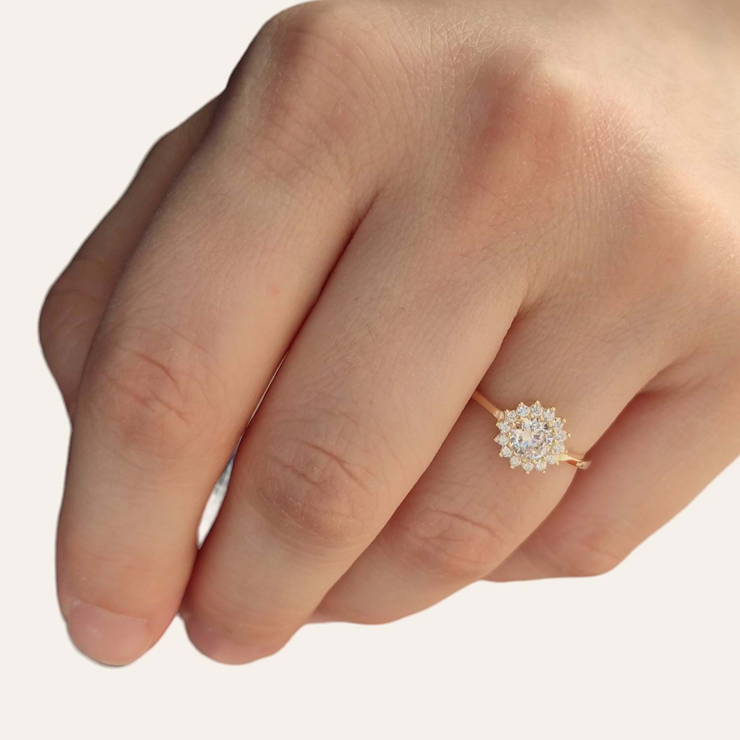 ZİRKON TAŞ MİNİ ÇİÇEK GÜMÜŞ YÜZÜK - ALTIN SARI - 14