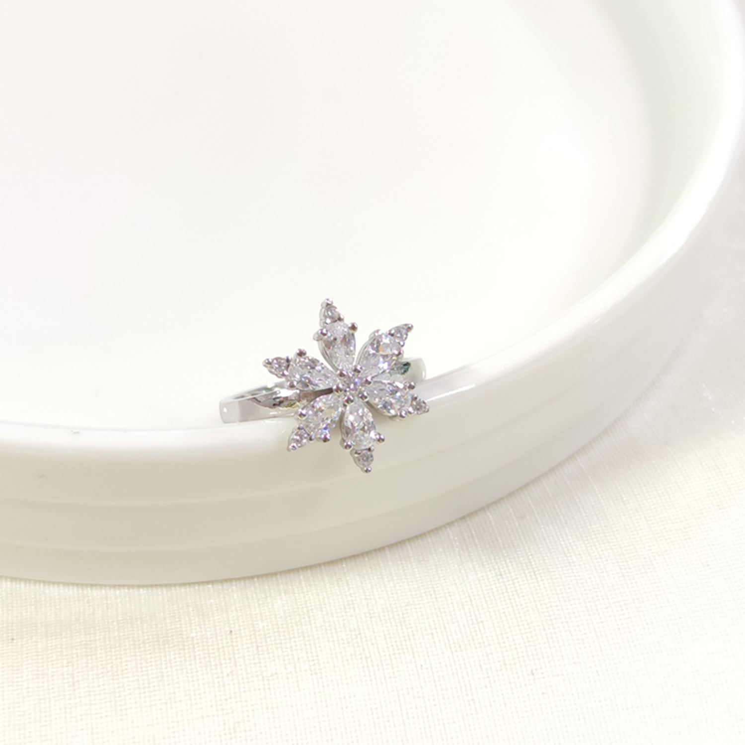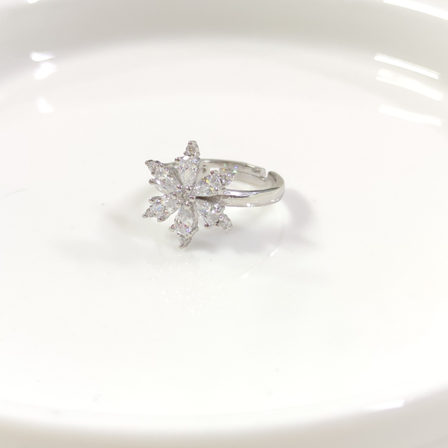 ZİRKON TAŞLI ÇİÇEK LOTUS GÜMÜŞ YÜZÜK AYARLANABİLİR