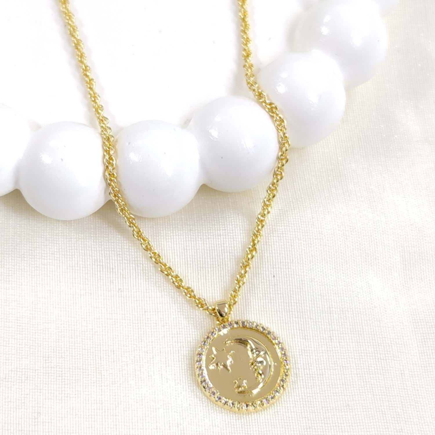 FULLYX 1,70 CM PLAKA HİLAL AY YILDIZ BURGU ZİNCİR KOLYE 40+4 CM - ALTIN SARI