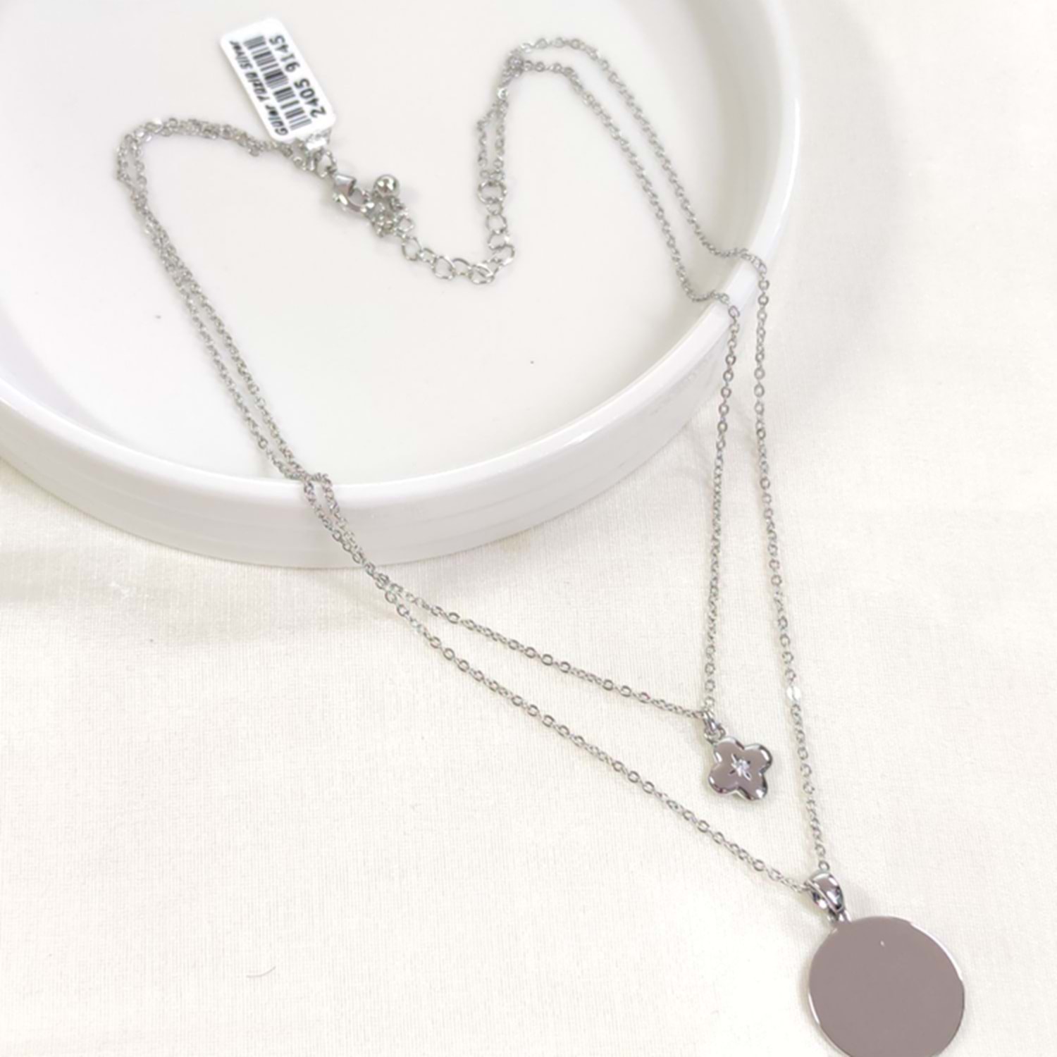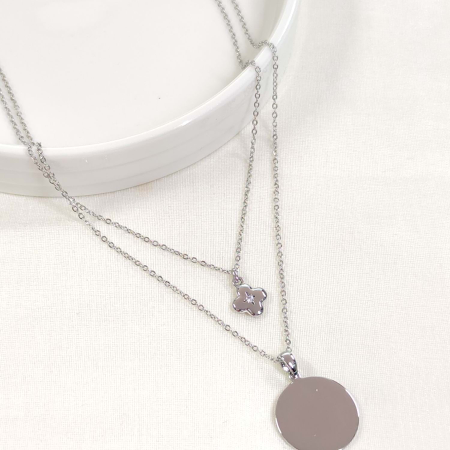 FULLYX 2 CM PLAKA VE ÇİÇEKLİ İKİLİ KOMBİN ZİNCİR KOLYE BEYAZ 40+5 CM