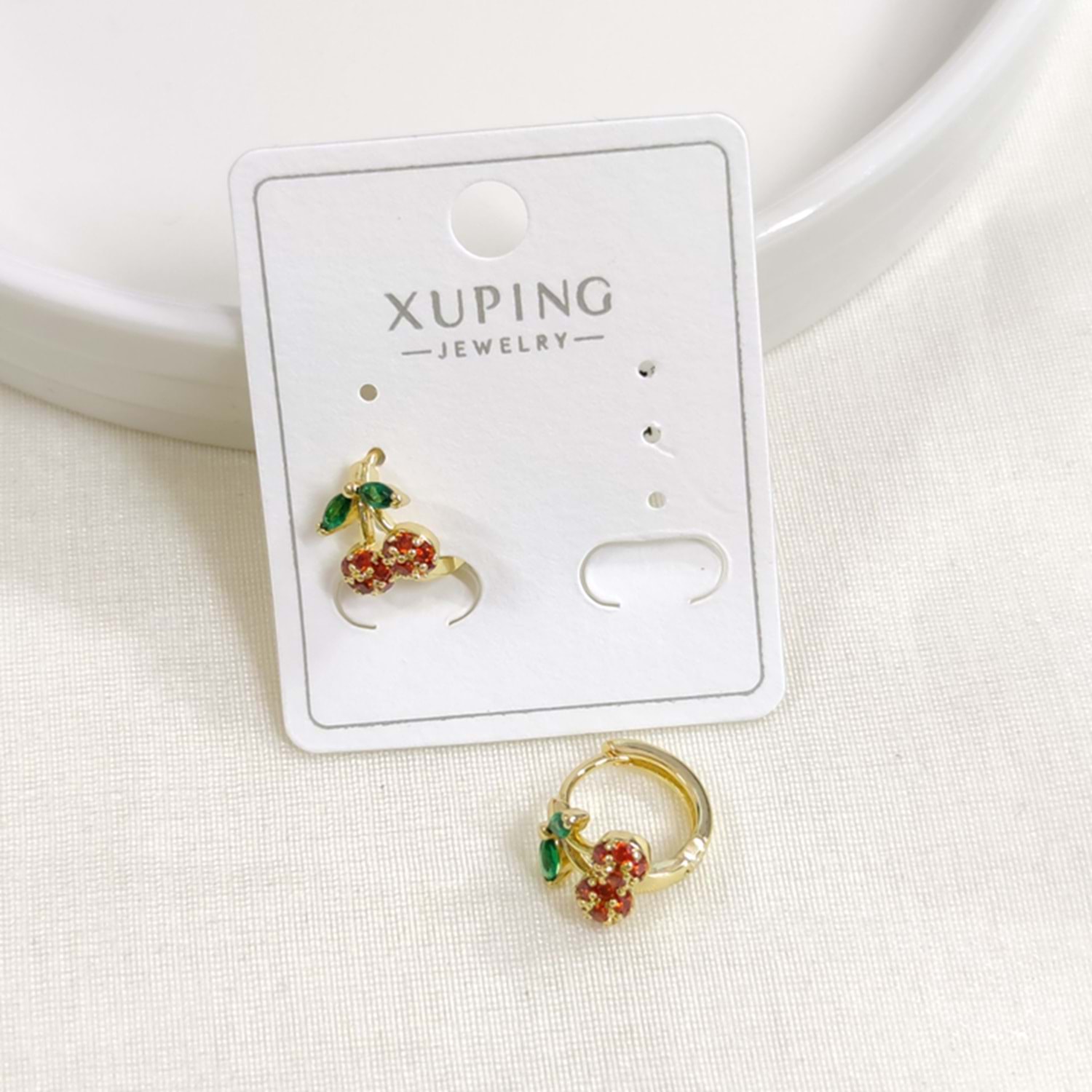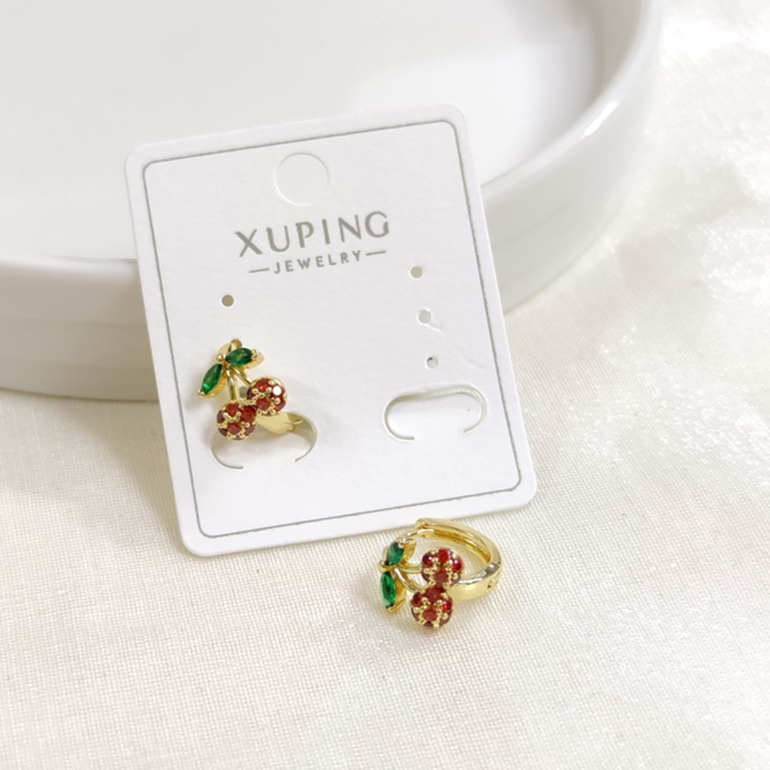 XUPING 10 MM TAŞLI KİRAZ HALKA KÜPE GOLD